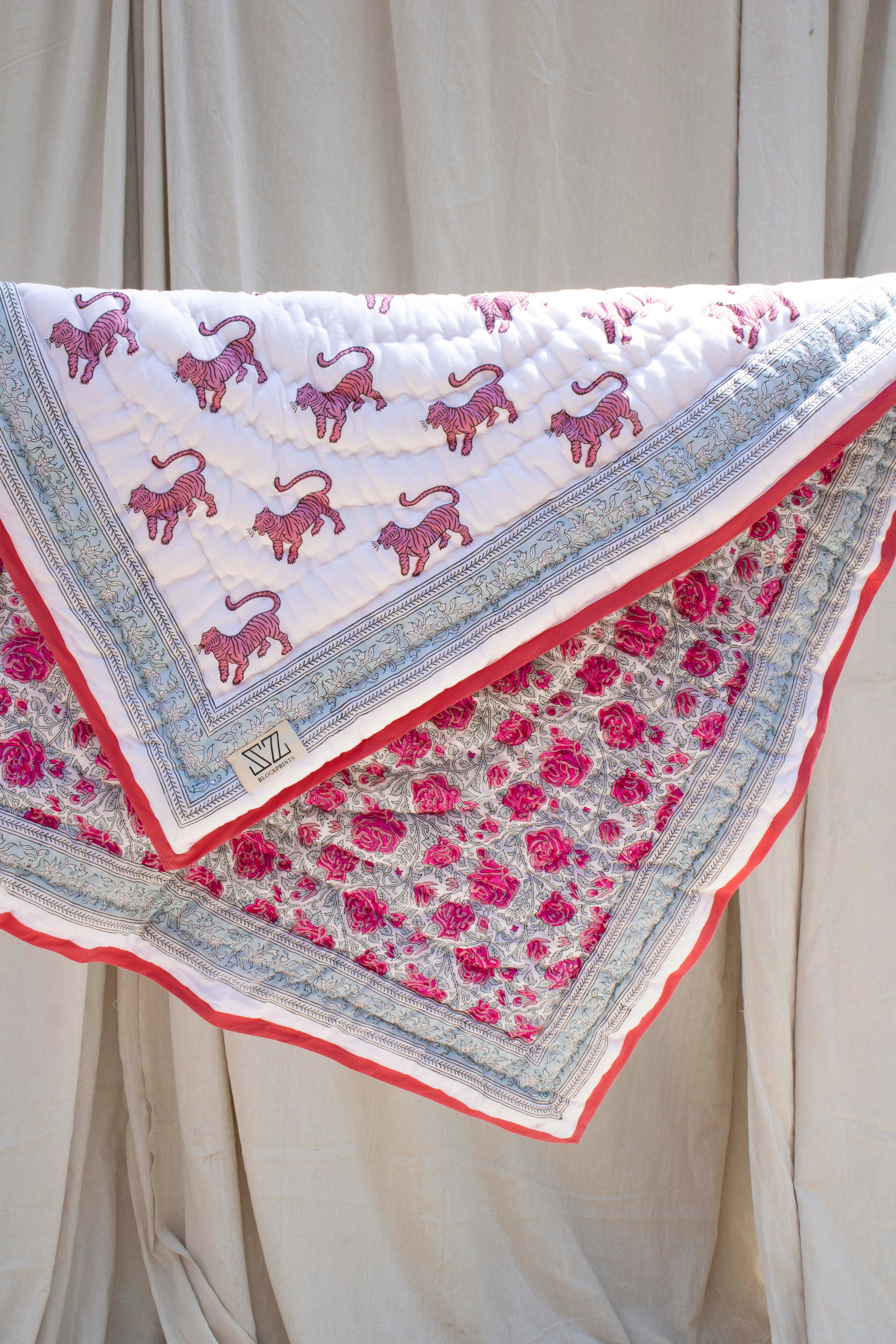 Standard Razai Sham in Poppy Stamp, Greenbriar