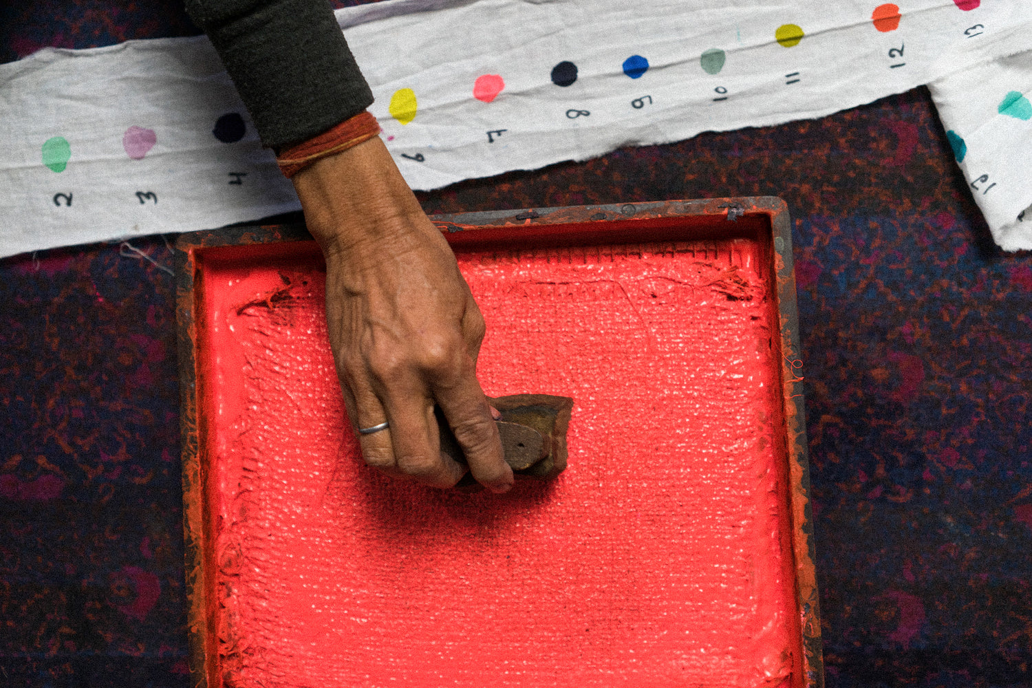 The power of the human hand: each wooden block is carved by hand, each print follows a rhythm. The steady beat of wood meeting cloth.