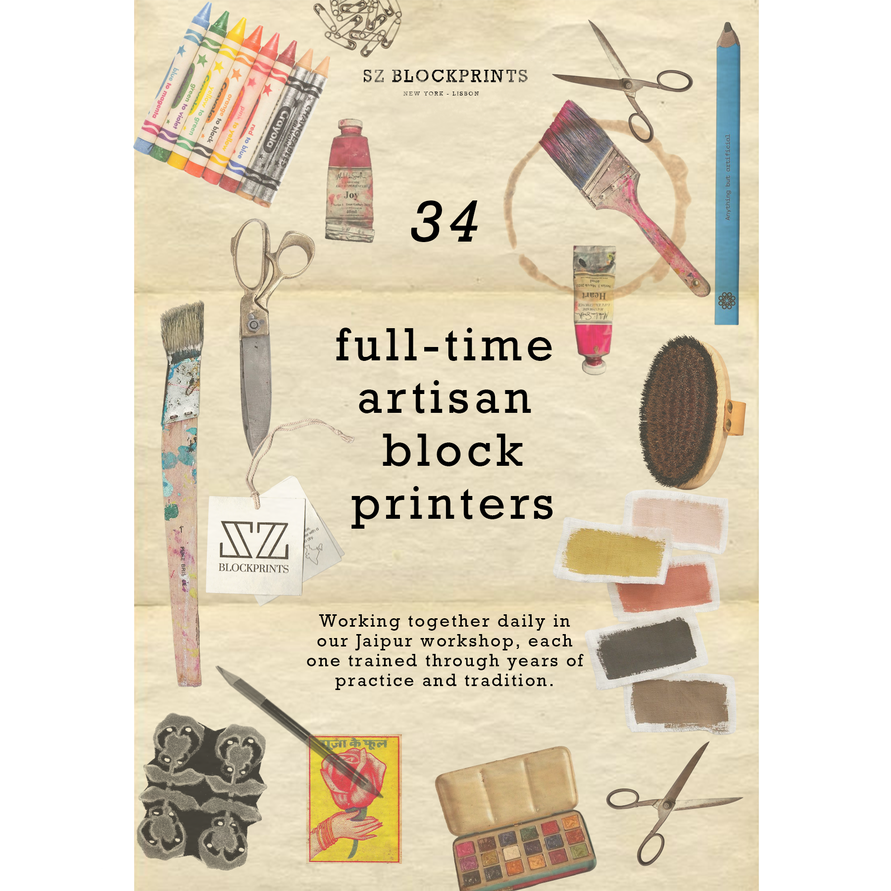 Alongside the devoted team of artisans, they strive to push hand block printing forward, refining heritage blocks and giving them new life for a contemporary audience.