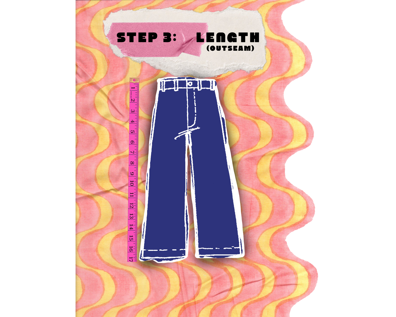 Measure from the top of your waist down to where you want the pants to hit, along the outside of your leg.