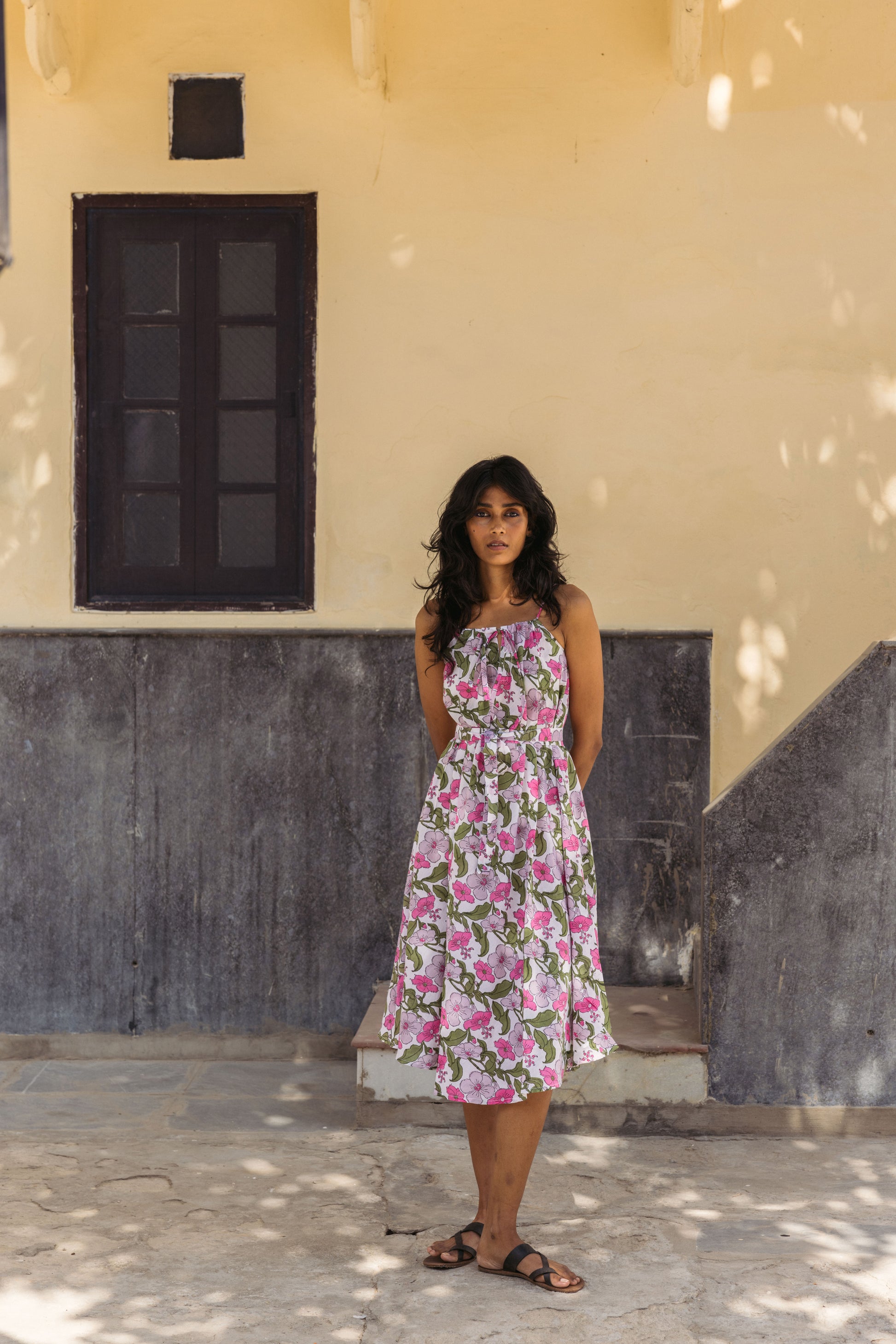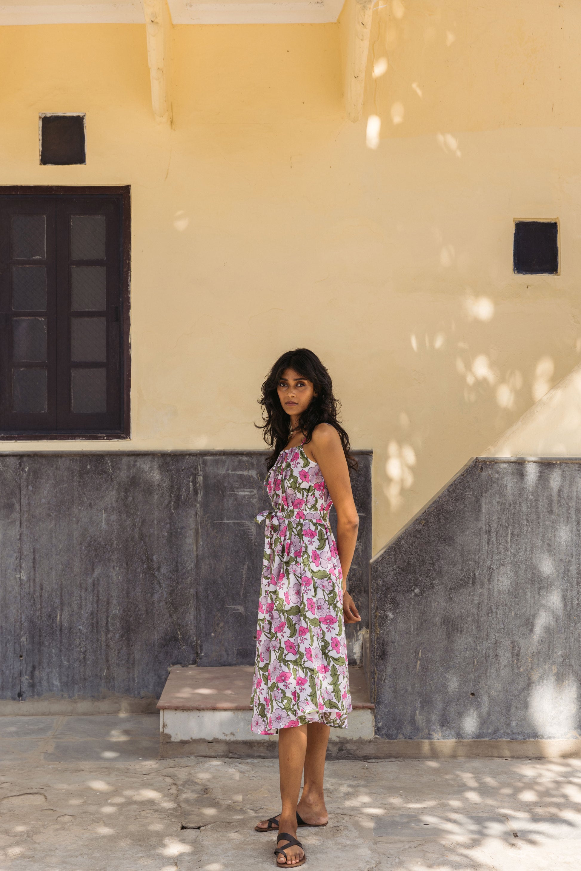 An easy A-line, mid-length dress with a breezy silhouette and feminine details. Made in our lightweight cotton. Featuring adjustable self-tie straps, a center front keyhole, and a voluminous body that flows effortlessly. The Goa Dress is unlined for maximum breathability, with a drawstring belt that allows you customize the fit.