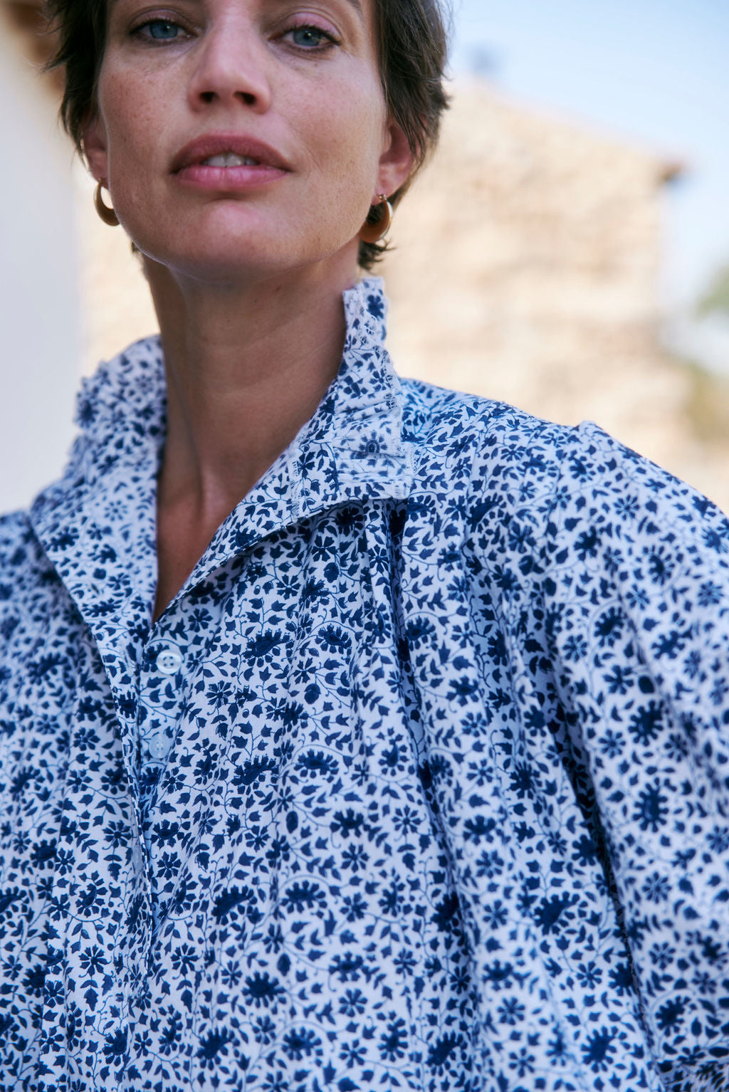 A cotton poplin pullover blouse in an effortlessly oversized shape. A gathered neckline is framed by billowing gathered sleeves for easy wearing.