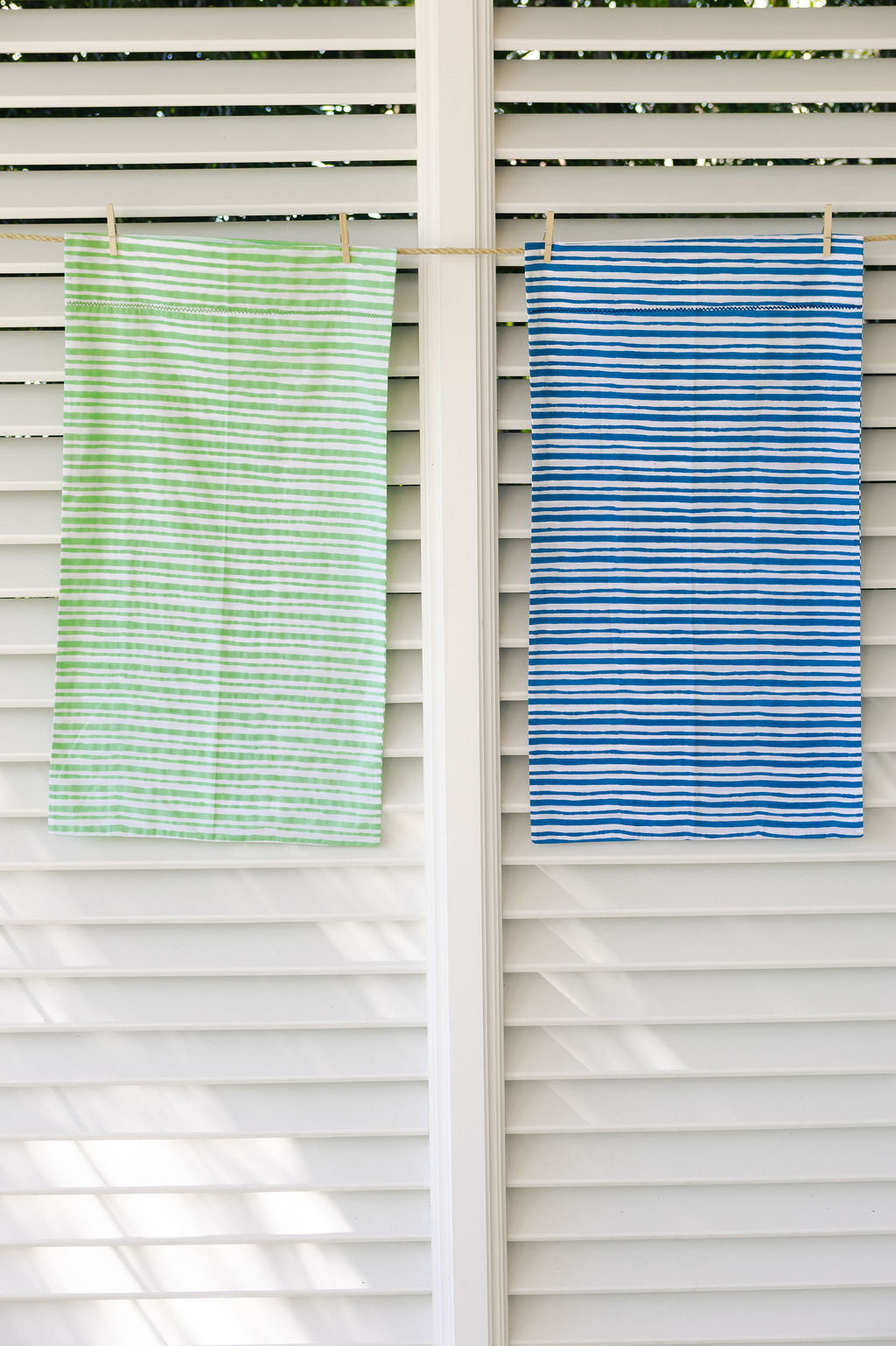 Hand block printed in our exclusive collaboration color of Directoire Blue.