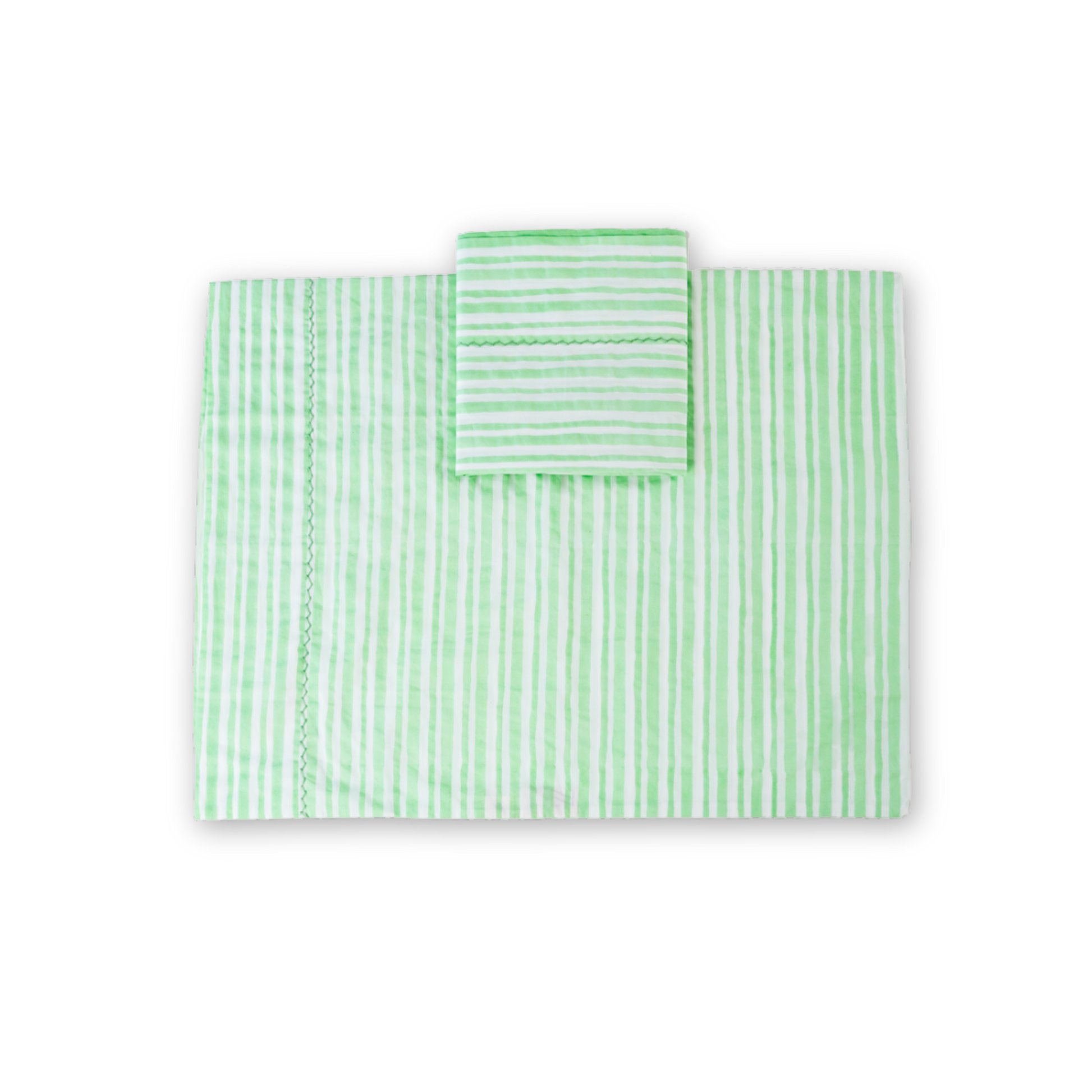 Hand block printed in our exclusive collaboration color of Greenbriar.
