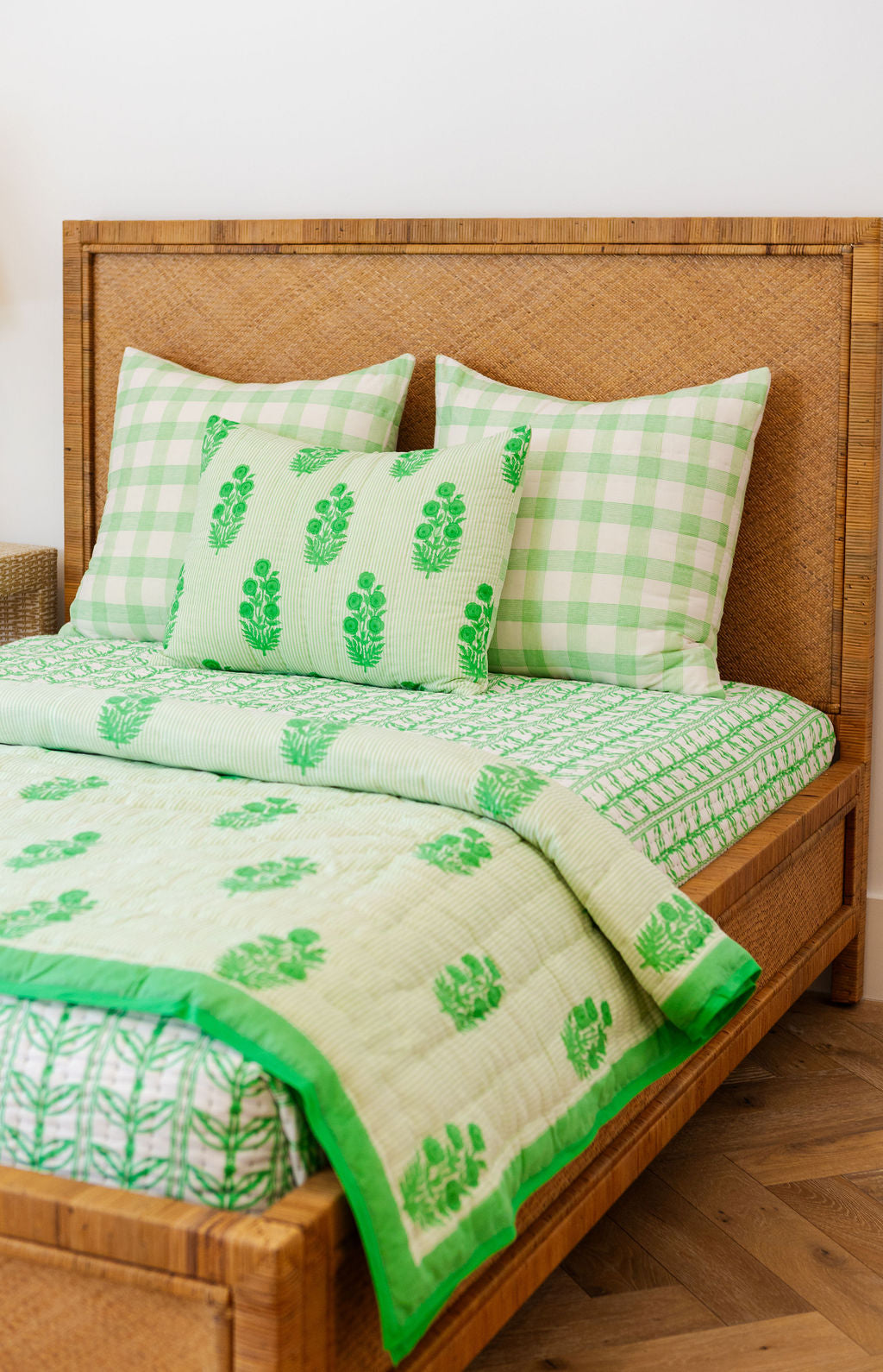 Hand block printed in our exclusive collaboration colors of Greenbriar & Greengage.