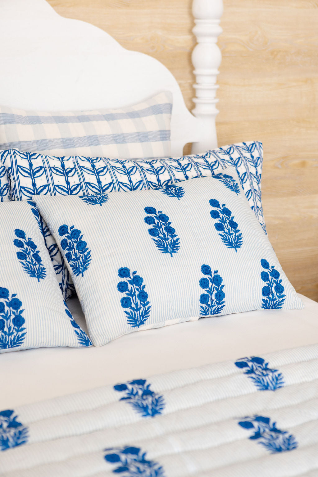 Standard Razai Sham in Poppy Stamp, Directoire Blue